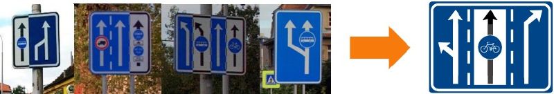Umístění vyhrazeného jízdního pruhu lze nově umístit do jiné dopravní značky určující směr, počet a umístění jízdních pruhů. Jedná se o kosmetickou a v podstatě grafickou změnu, k lepšímu vyjáření dané situace.